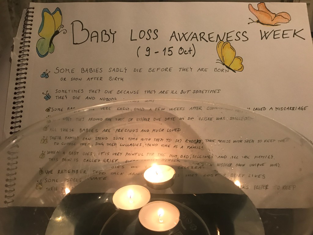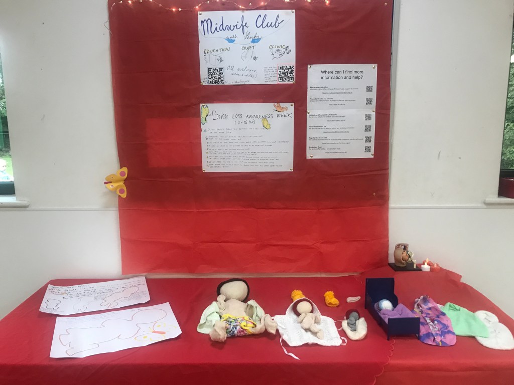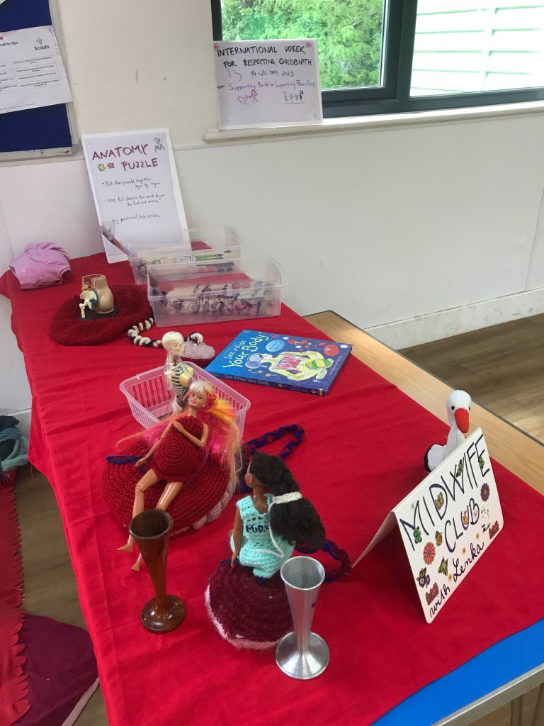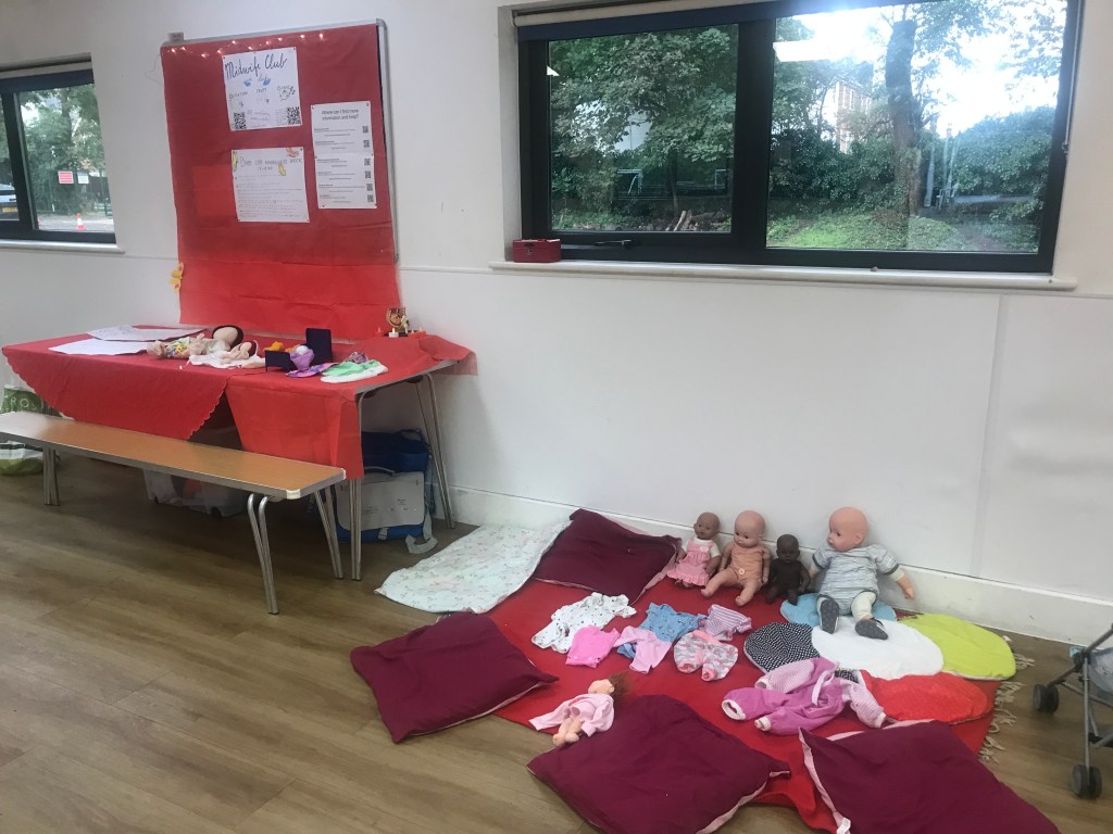 - 20/10/23 Baby loss awareness week. Hand made dolls representing various gestations, tiny baby clothes. Making paper butterflies at the main craft table. Lighting candles at the main craft table. Relaxation and play zone. New baby zone.