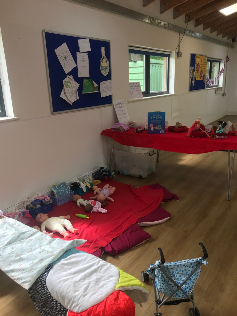 - 09/06/23 Cakes and other bakes to celebrate my birthday. Baby dolls and prams, doll family and midwife play set, relaxation area with music, birth and baby colour-in books.