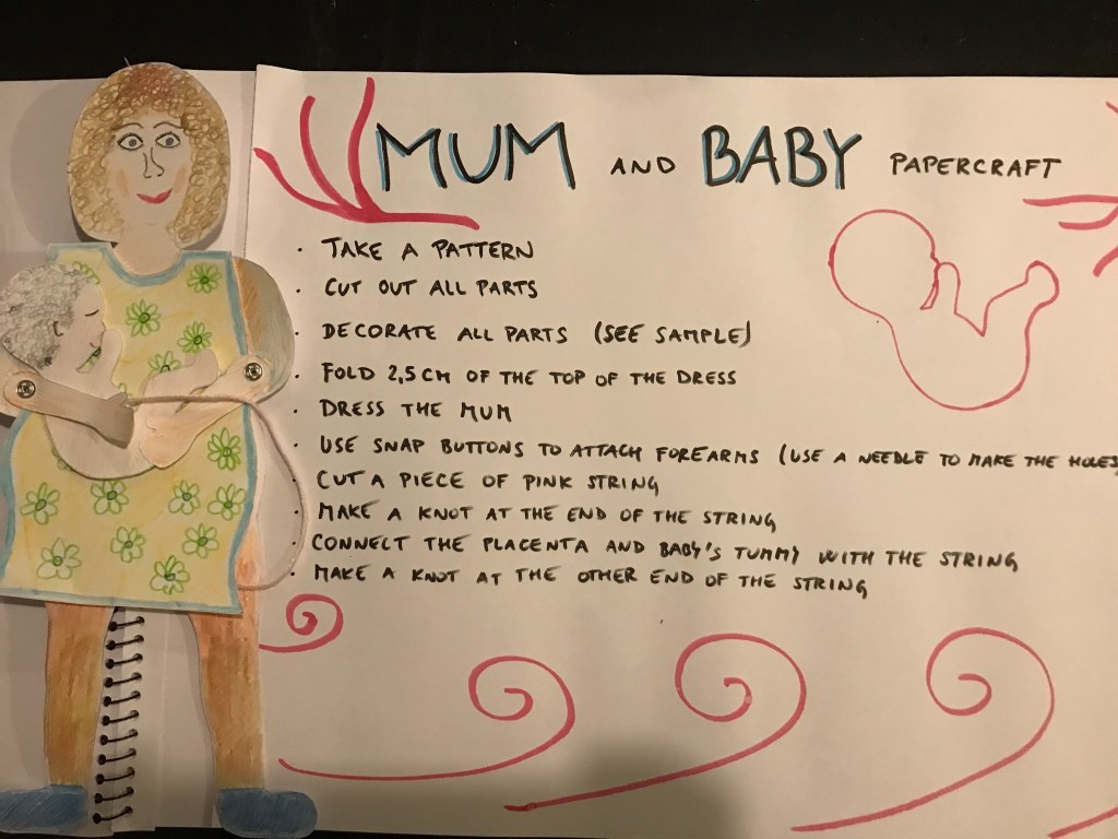 - 13/10/23 Mum and baby papercraft. Doll family birth display with a doll midwife. Baby and placenta in womb. Pregnancy anatomy model. Dolls, slings and prams. For exploration and play.