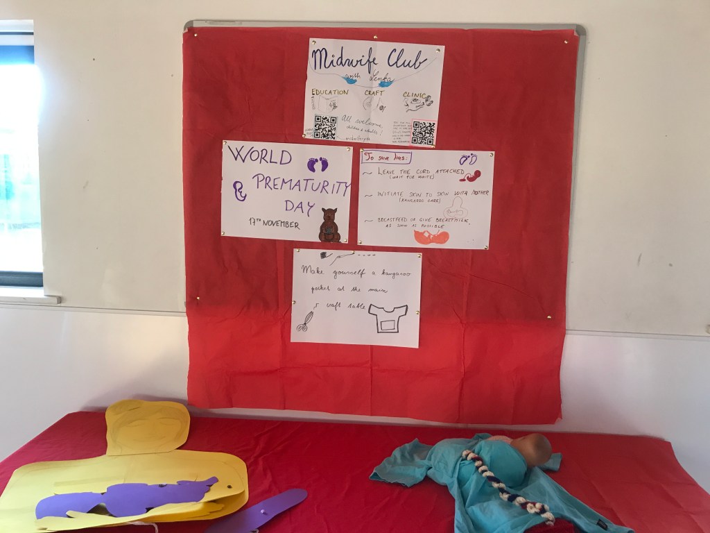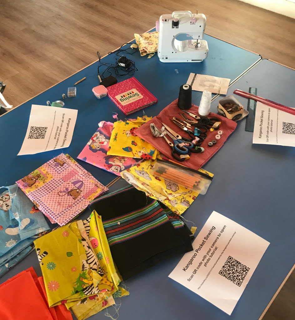 - 24/11/2023 Week two of World prematurity day. Kangaroo care display with relaxation zone. Sewing kangaroo pockets at the main craft table (tutorial here: https://midwifery.cz/2023/11/17/world-prematurity-day-kangaroo-pockets-sewing/ )