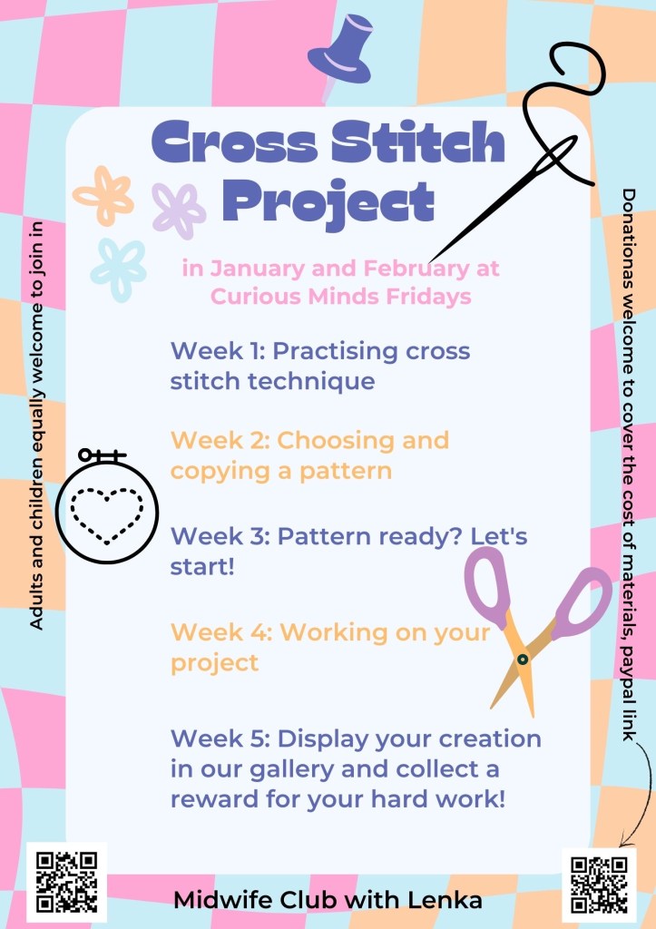 - 26/01/2024 Buggy race with rewards, baby zone, week two of Cross Stitch Project at the main craft table.